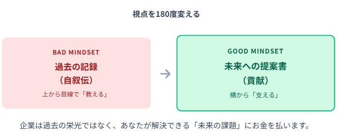 視点の転換:職務経歴書は「自叙伝」ではない。「未来への提案書」だ